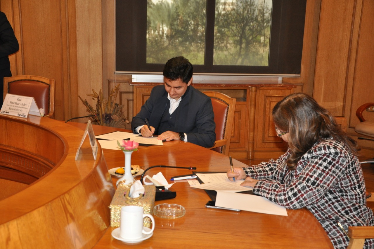 وتضمن وفد جامعة كازان البروفيسور تيميرخان أليشيف نائب رئيس الجامعة الروسية للشؤون الدولية والدكتورة أوكسانا بوليأكوفا نائب مدير الشؤون الدولية، والدكتور محمود شاهين الباحث في جامعة كازان.