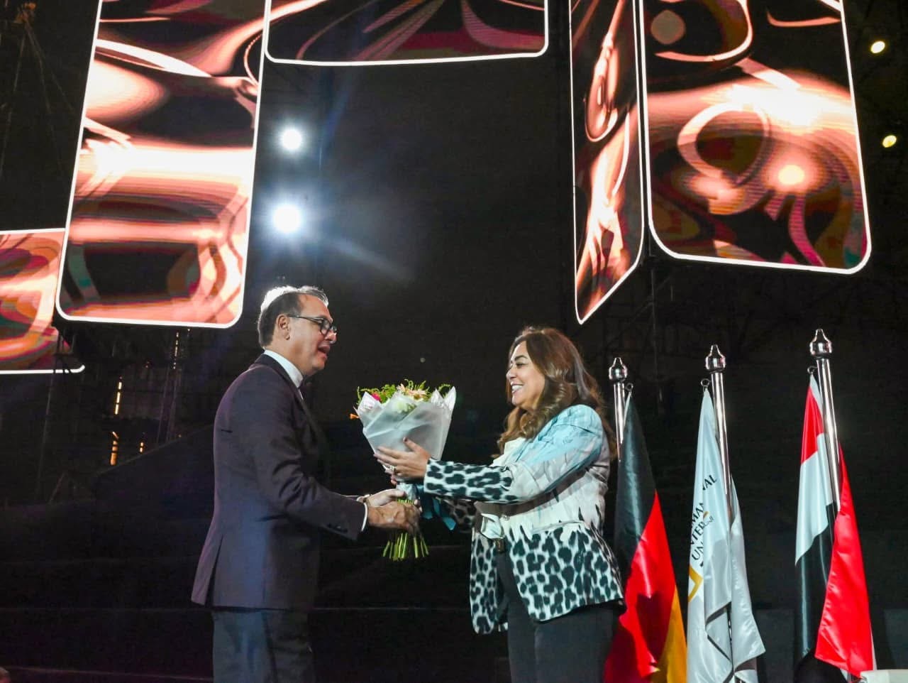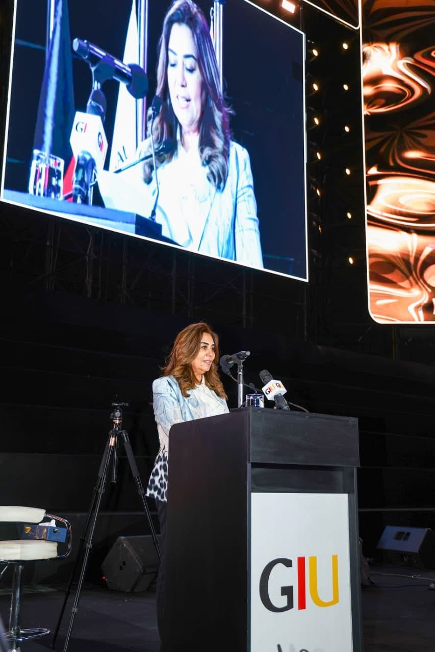 من جانبها، أعربت الدكتورة منال عوض، وزيرة التنمية المحلية والقائم بأعمال وزير البيئة، عن سعادتها بالمشاركة في احتفال الجامعة الألمانية الدولية، مشيرة إلى أن هذا اليوم يمثل لحظة فخر وفرحة لكل أسرة مصرية آمنت بالعلم طريقًا لبناء المستقبل.
