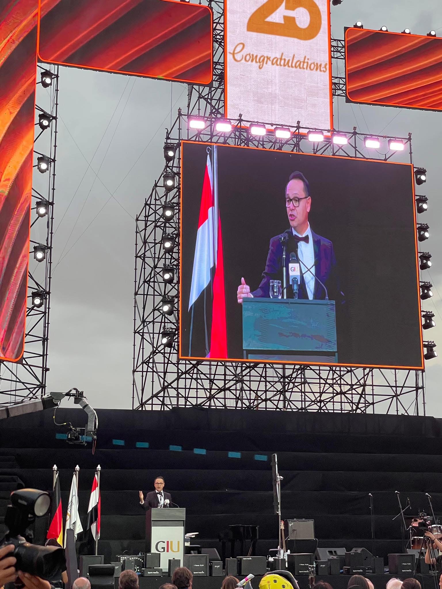 وأكد أن الجامعة الألمانية الدولية بالعاصمة الإدارية أصبحت رمزًا للتعاون الأكاديمي المثمر، ونموذجًا لما يمكن أن تحققه الشراكات التعليمية في دعم التنمية المستدامة وصقل مهارات الشباب المصري.