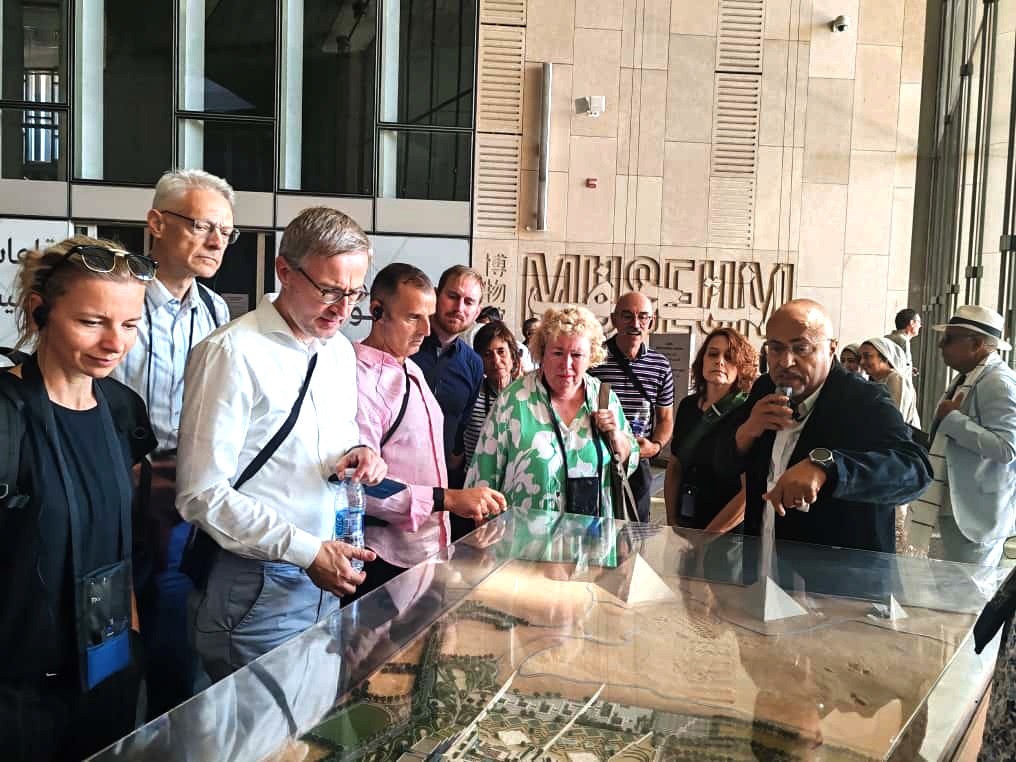 واستقبل مسؤولو المتحف الوفد الألماني واصطحبوه في جولة داخل أروقته، بدأت بعرض تعريفي حول قصة إنشاء المتحف كأحد أبرز إنجازات مصر الحديثة، بوصفه أكبر متحف في العالم مخصص للحضارة المصرية القديمة. ويضم المتحف مجموعات أثرية فريدة، منها كنوز الملك توت عنخ آمون التي تُعرض كاملة لأول مرة، ومجموعة الملكة حتب حرس، ومراكب الملك خوفو، إلى جانب مقتنيات تعود إلى عصور ما قبل الأسرات وحتى العصرين اليوناني والروماني.