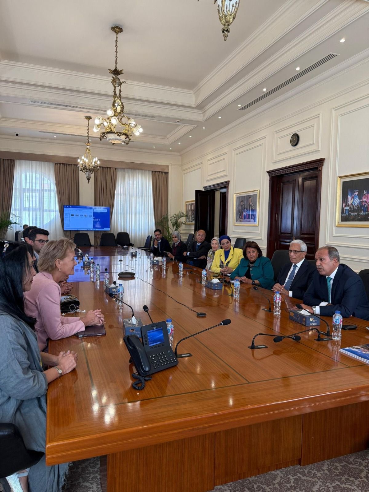 وأوضح الدكتور “لطفي”، أن الجامعة تٌعد أول مؤسسة جامعية توقع بروتوكول تعاون مع مبادرة “حياة كريمة”، وتُسيّر قوافل أسبوعية للقرى الأكثر احتياجًا، فضلًا عن مستشفى طب الأسنان بالجامعة والذي يستقبل يوميًا من 800 إلى 1000 مواطن للعلاج المجاني، واختتم رئيس الجامعة معربًا عن سعادته بهذه الزيارة وعن حرص الجامعة لبحث سبل للتعاون المشترك التي تسهم في خدمة طلابها وتعزيز فرصهم الأكاديمية والتدريبية دوليًا، انطلاقًا من إيمانها بدور الشراكات الدولية في بناء جيل يمتلك وعيًا عالميًا وقدرة حقيقية على الإسهام في تحقيق التنمية المستدامة. وتأتي هذه الزيارة كفرصة لتعميق الحوار وتبادل الخبرات، بما يدعم مسيرة الجامعة في ترسيخ التعليم الدولي الذي يجمع بين الريادة الأكاديمية والمسؤولية المجتمعية.