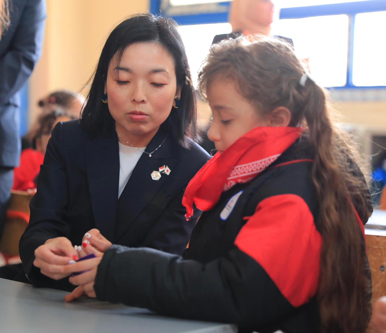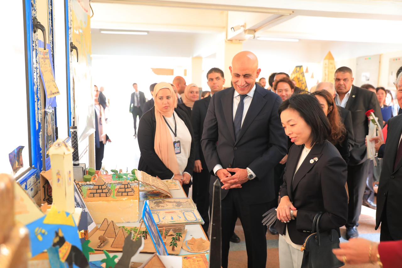 وخلال زيارتها لأحد الفصول، حرصت سمو الأميرة أكيكو والوزير محمد عبد اللطيف على تبادل الحديث مع الطلاب، كما تابعا أنشطة “التوكاتسو” داخل أحد فصول الصف الثاني الابتدائي، حيث شهدا تطبيق الأطفال لمهارات التعاون والعمل الجماعي في بيئة تعليمية محفزة.