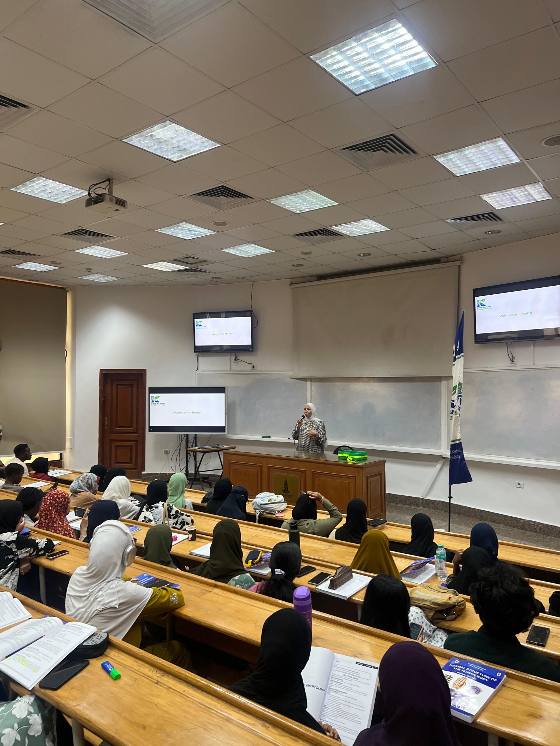 كما شاركت الأستاذة الدكتورة رانيا زايد ميدانيًا في فعاليات الحملة، والتي تضمنت المرور على الطلاب المصريين والوافدين داخل المدرجات والقاعات الدراسية للتعريف بأنشطة المكتب الأخضر، إلى جانب تنظيم ندوة تثقيفية بعنوان “المياه والصحة” ركزت على العلاقة الوثيقة بين جودة المياه وصحة الإنسان، وطرق الحفاظ على موارد مصر المائية وترشيد استهلاكها.