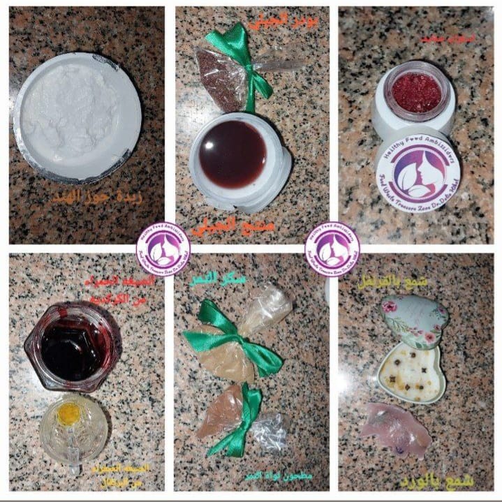 وفي جانب التغذية التجميلية، قدّم الفريق منتجات عناية بالبشرة خالية تمامًا من أي مركبات كيميائية، معتمدين على مستخلصات لونية طبيعية. وشملت المنتجات: أنواعًا من الاسكراب، التونر، كريمات الترطيب، الصابون، والشموع العطرية، ما يعكس توجهًا نحو تجميل مستدام وصديق للبيئة.