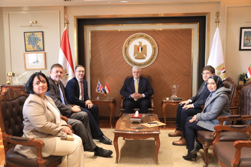 التقى الدكتور أيمن عاشور، وزير التعليم العالي والبحث العلمي، بالسيد مارك بريسون ريتشاردسون السفير البريطاني بالقاهرة؛ لبحث آفاق التعاون المشترك بين الجانبين، مع التركيز على التوسع في الفروع الدولية للجامعات، وتعزيز التعاون في مجال التعليم التكنولوجي.