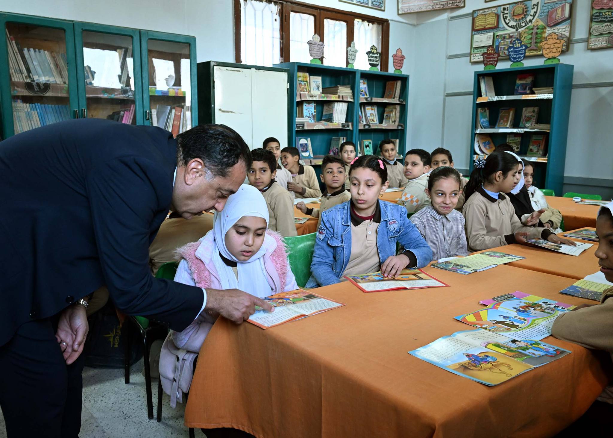 وحرص الدكتور مصطفى مدبولي على حضور إحدى الحصص الدراسية للصف الأول الابتدائي، حيث أعرب للطلاب عن سعادته للاستماع إلى الشرح الملقى عليهم حول فصول السنة، من إحدى الطالبات، وفي غضون ذلك استفسر من مدرسة الفصل حول نسب الحضور والغياب، ومدى استيعاب الطلاب للمقررات الدراسية، كما طلب من إحدى الطالبات قراءة نص من كتاب اللغة العربية، حيث أشاد بها رئيس الوزراء وبنطقها السليم لحروف اللغة، وتمنى لها التوفيق.