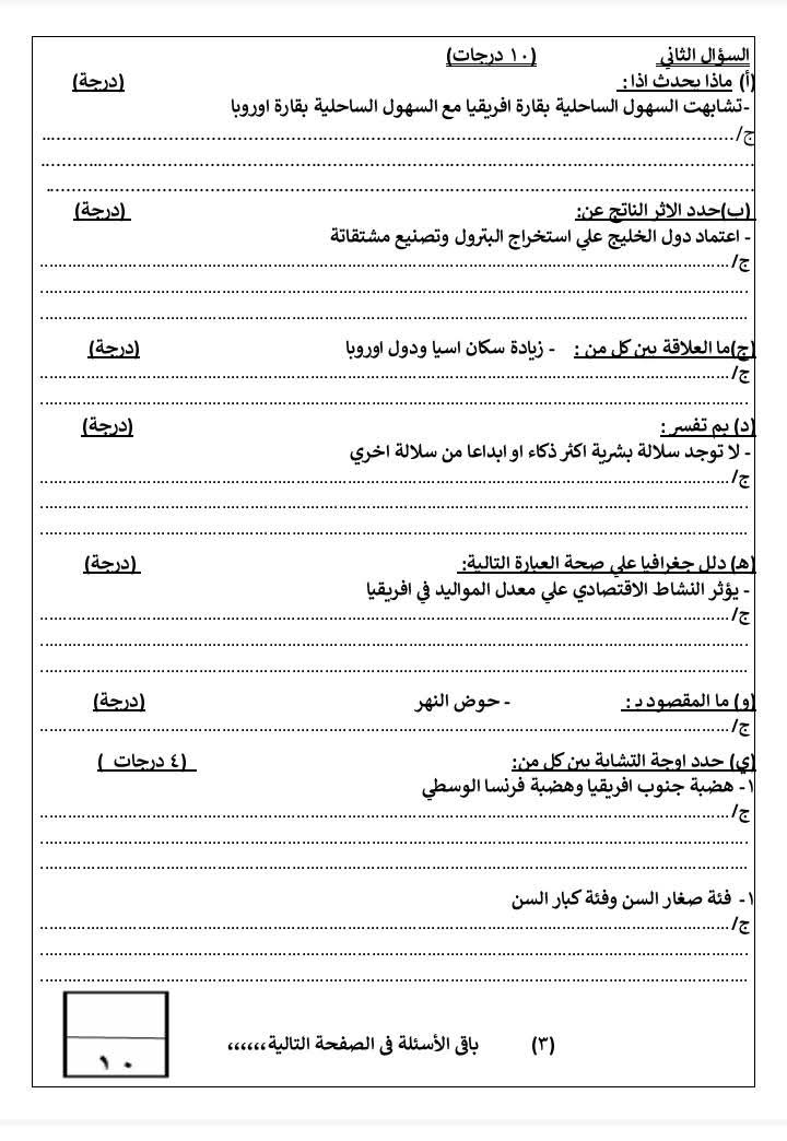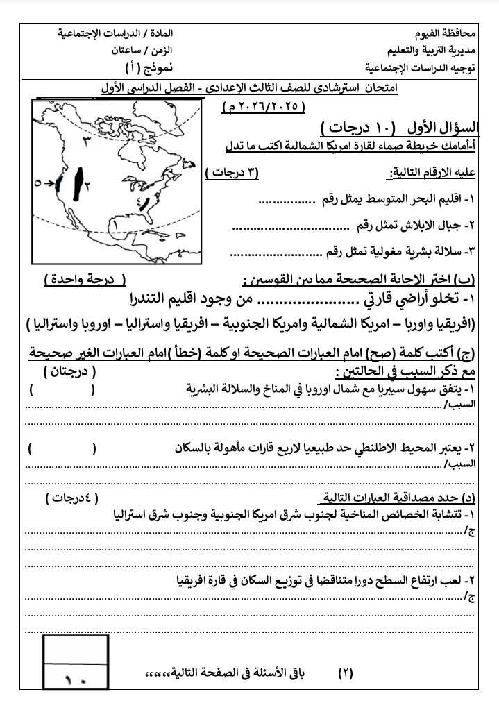وبعد الاستماع لمراجعة مادة الدراسات الاجتماعية لطلاب الشهادة الإعدادية 2026 ترم أول بحل نموذج استرشادي لامتحان مادة الدراسات لطلاب الصف الثالث الإعدادي من خلال مطالعة الصور التالية: