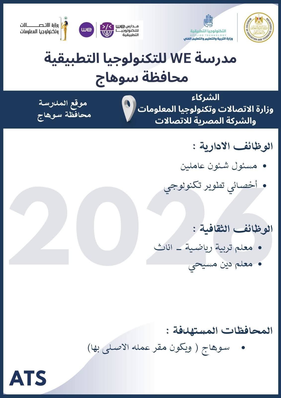آخر موعد للتقديم للالتحاق بفريق عمل مدارس التكنولوجيا التطبيقية ومراكز التميز