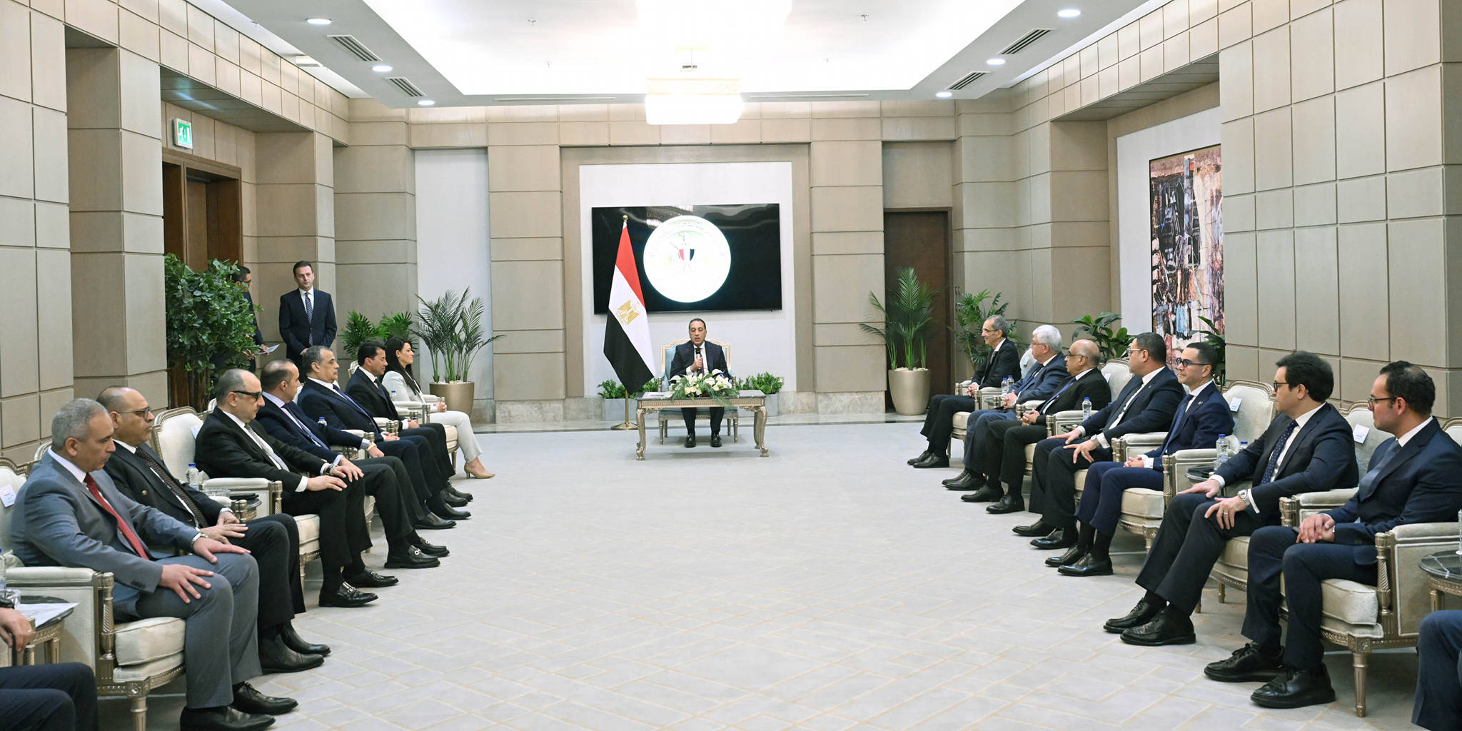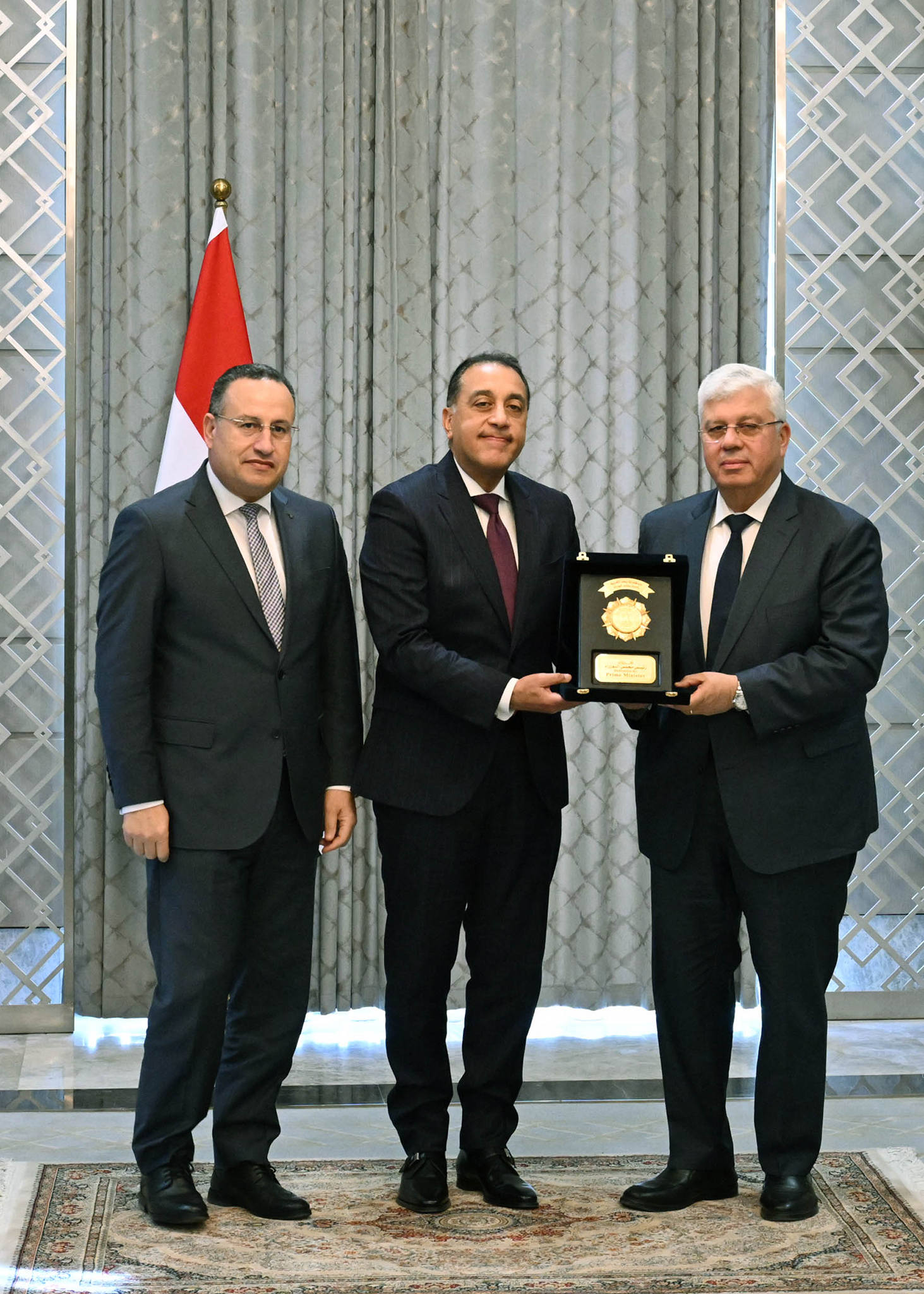 قبل انعقاد أول اجتماع للحكومة بتشكيلها الجديد، استقبل الدكتور مصطفى مدبولي، رئيس مجلس الوزراء، صباح اليوم، بمقر الحكومة بالعاصمة الجديدة، الوزراء السابقين الذين انتهت مهامهم بموجب قرار رئيس الجمهورية رقم 75 لسنة 2026 بشأن التعديل الوزاري الأخير؛ حيث قام بتسليم كلٍ منهم درع تكريم تقديرًا لجهودهم خلال فترة توليهم المسئولية، وذلك بحضور نظرائهم من الوزراء الجدد.