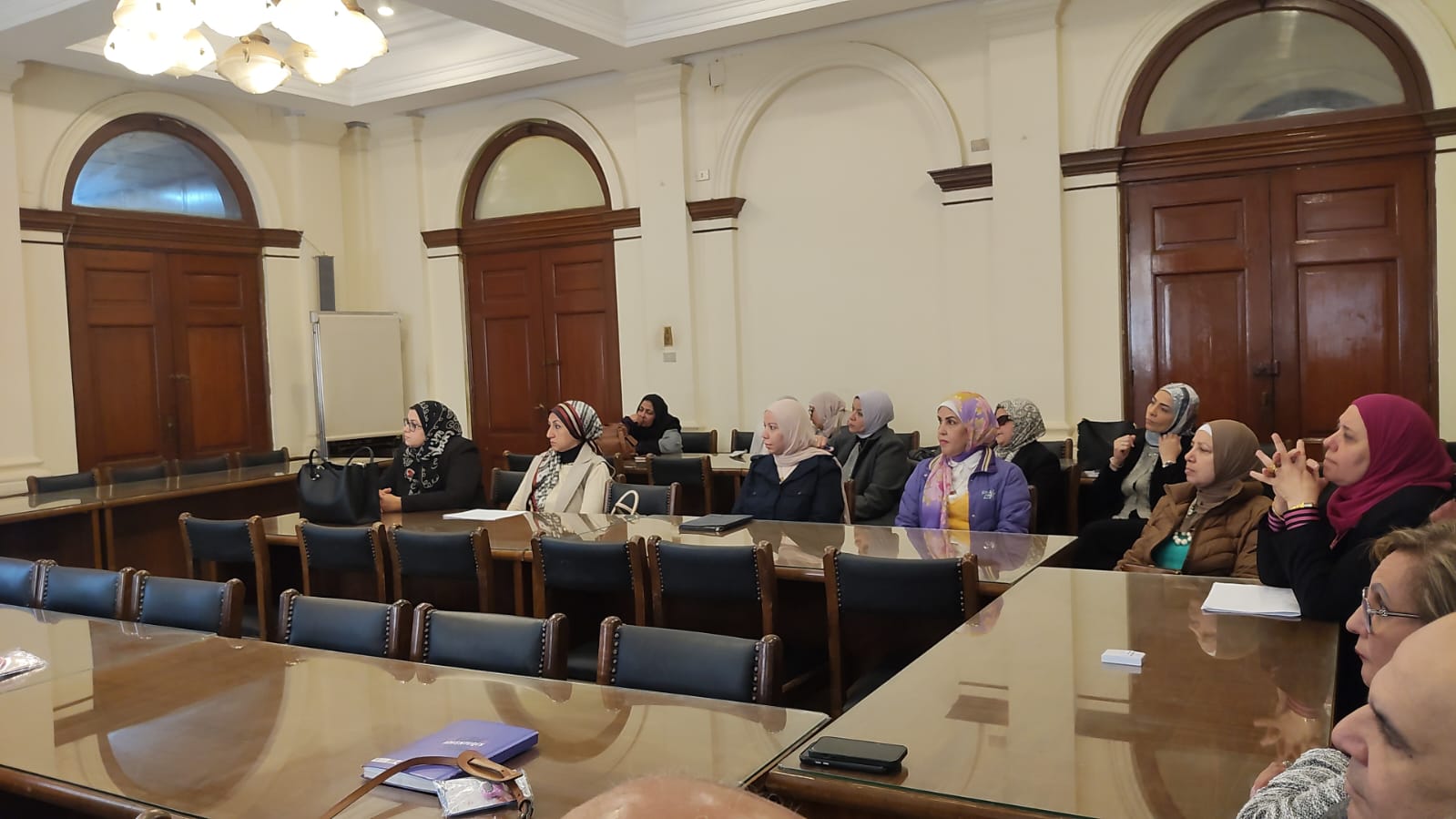 وفيما يتعلق بتطوير العملية التعليمية، جرى التأكيد على تنوع استراتيجيات التدريس والتعلم، والتوسع في استخدام معامل المهارات والمحاكاة، وتحليل نتائج الامتحانات بصورة دورية لضمان عدالة التقييم وموضوعيته. كما تقرر عرض أنشطة الجودة وآليات التعلم الميداني للطلاب في بداية كل موديول دراسي لتعزيز وعيهم بثقافة الجودة ودورهم في عملية التطوير.