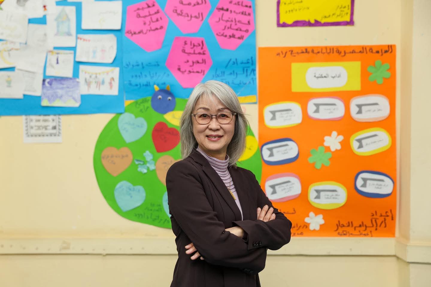 وأكملت حديثها: أحياناً يأتيني طفل وبيده رسمة أو اختراع بسيط صنعه في حصة العلوم، يريها لي بفخر لا يضاهى، أنا اليوم لا أعرف أسماءهم كلها، فالحروف العربية لا تزال تتمرد على لساني، لكنني أحفظ بريق عيونهم، ربما جئتُ أحملُ فلسفةَ الالتزامِ الياباني، لكن الحقيقة أنهم هم من أهدوني شجاعةَ البوح، وعلموني كيف أُطلق سراحَ مشاعري، وكيف أتحدث بلسان قلبي دون تحفُّظ.