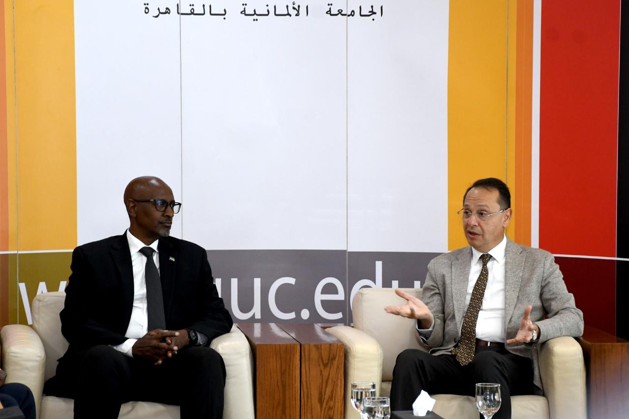 من جانبه، أعرب الوزير الرواندي عن تقديره لحفاوة الاستقبال، مشيدًا بالإمكانات المتقدمة التي تمتلكها الجامعة الألمانية بالقاهرة، وما تقدمه من نموذج تعليمي متطور يجمع بين الجانب الأكاديمي والتطبيقي، مؤكدًا تطلع بلاده إلى بناء مزيد من الشراكات الفعالة و المممتدة مع الجامعة في مختلف المجالات.