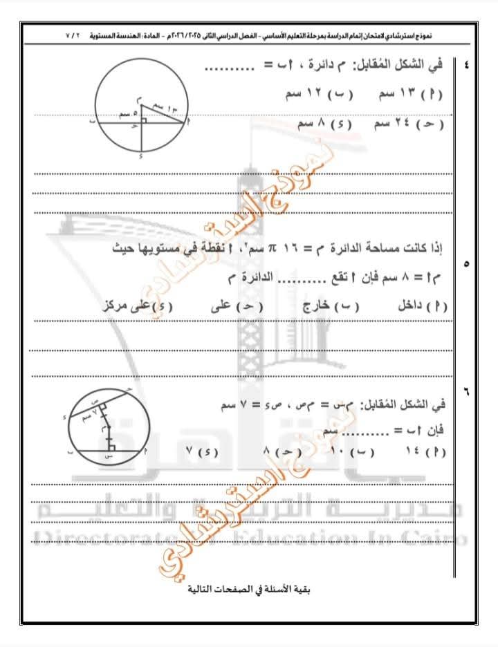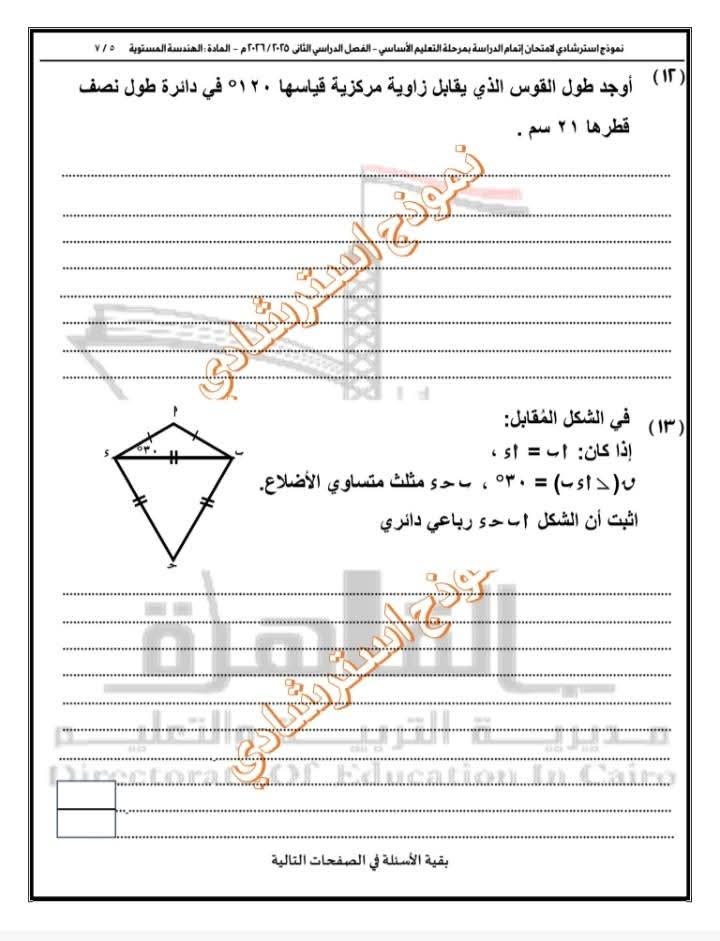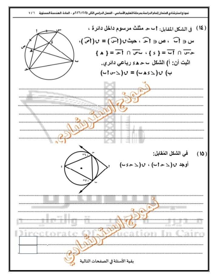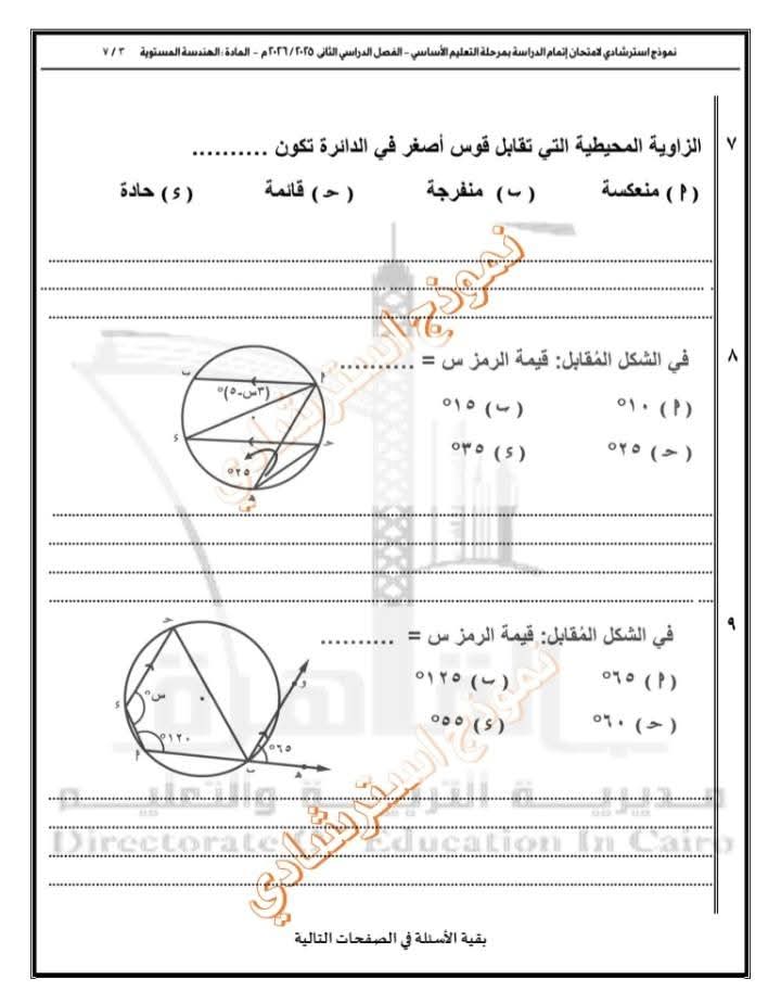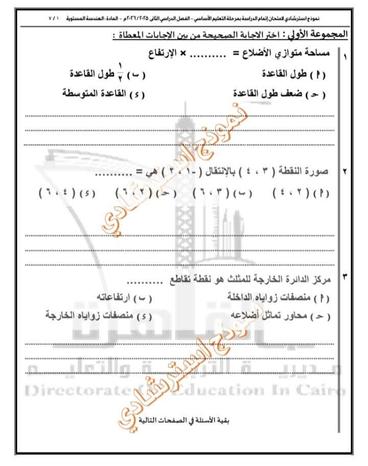ويمكن الحصول على النموذج الاسترشادي الأول لامتحان مادة الهندسة للشهادة الإعدادية بنظام البوكليت، من خلال مطالعة الصور التالية: