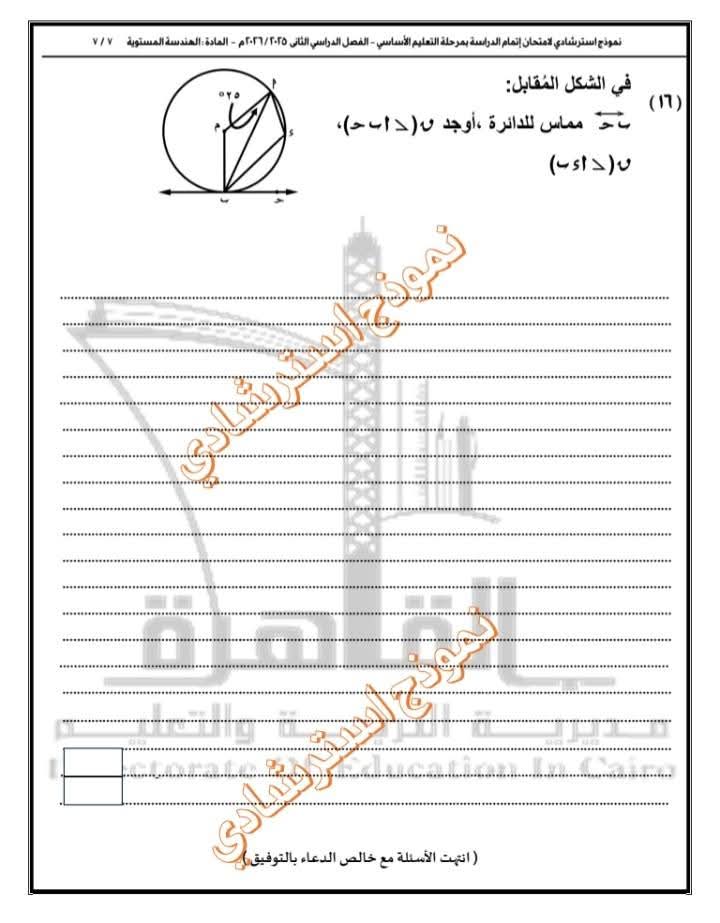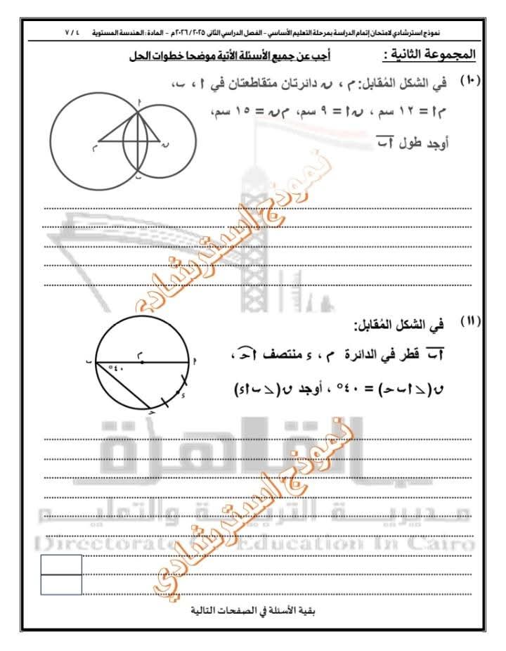 نموذج امتحان مادة الهندسة للشهادة الإعدادية بنظام البوكليت «صور»