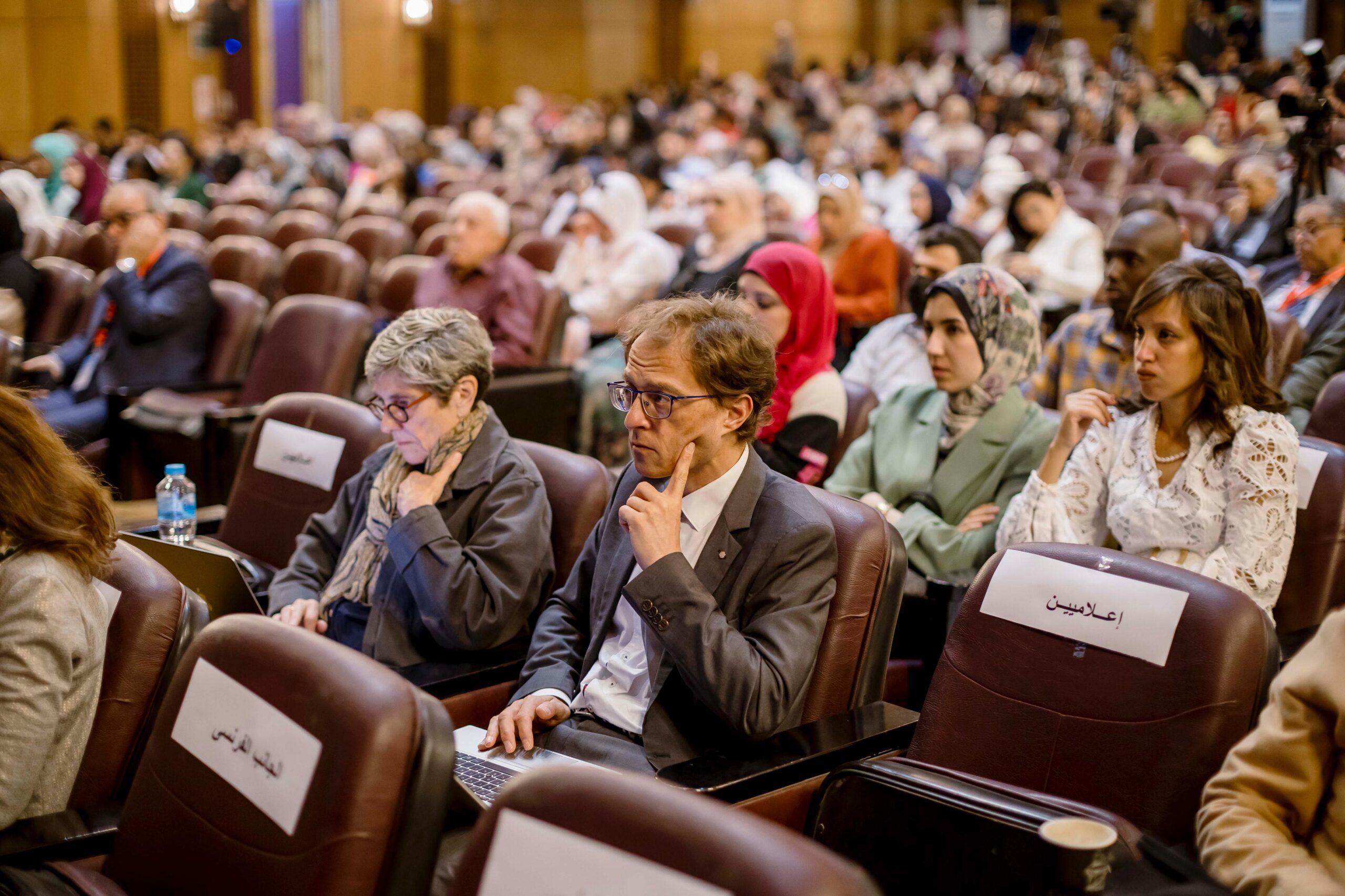 وقد شهدت الجلسة الافتتاحية حضوراً بروتوكولياً لافتاً على منصة الصدارة، تقدمهم الأستاذ الدكتور حسام صلاح مراد عميد الكلية، والأستاذ الدكتور أحمد عبد العزيز مدير معهد تيودور بلهارس للأبحاث، و Professeur Philippe Ruszniewski المنسق الفرنسي للاتفاقية، والدكتور كريم سعيد ملحق التعاون العلمي والثقافي بالسفارة الفرنسية، والأستاذ الدكتور عبد المجيد قاسم وكيل الكلية لشؤون الدراسات العليا والبحوث، والأستاذة الدكتورة حنان مبارك وكيل الكلية لشؤون التعليم والطلاب. كما شهدت الجلسة حضوراً كريماً للسادة الوزراء، الأستاذة الدكتورة نادية زخاري والأستاذ الدكتور فؤاد النواوي، ولفيف من رؤساء الأقسام بالكلية والأساتذة والضيوف الفرنسيين، والمنسقين المصريين للاتفاقية الأستاذ الدكتور محمد سعيد، والأستاذ الدكتور أيمن فؤاد، والأستاذ الدكتور أحمد الراعي،الاستاذ دكتور نادين علاء مدير البرنامج الفرنسي بالكليه.